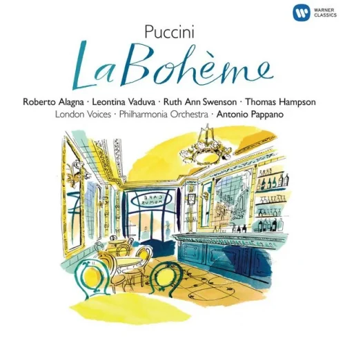 Antonio Pappano has a real feeling for Puccini, shown in the way he brings every musical detail to life — especially important in La bohème. Vocally, this recording cannot compete with the very best, but it is still interesting enough to deserve a place in this top ten. Leontina Vaduva gives a sensitive Mimi, and Roberto Alagna, his voice still youthfully fresh, sings an intense Rodolfo.