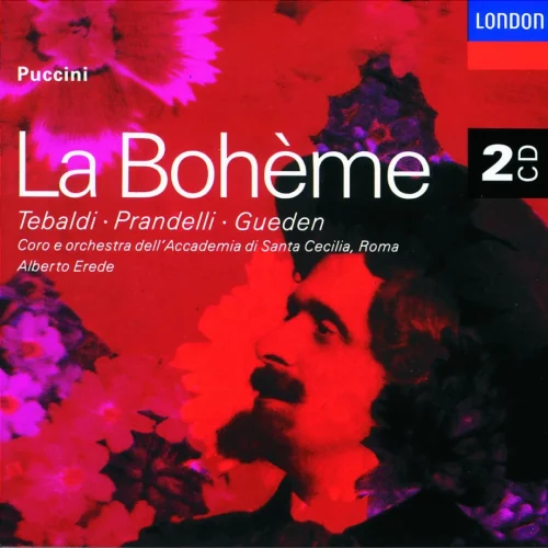 Renata Tebaldi’s first recording as Mimi is even more beautiful and moving than her later stereo version. Decca’s 1951 mono recording has impressively clear and fresh sound, and Alberto Erede’s interpretation with the Santa Cecilia Orchestra in Rome is both elegant and lively. But it is above all the singing that draws one back to this recording, with Giacinto Prandelli giving a warm and emotional Rodolfo. Hilde Güden’s brilliant Musetta also deserves mention.