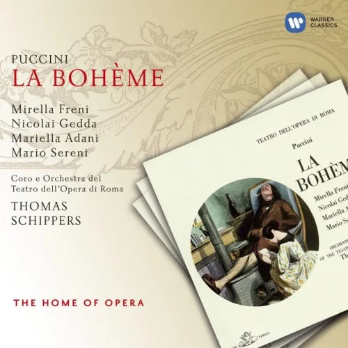 Thomas Schippers’ recording was originally intended to be a stereo remake of Beecham’s mono version. But Jussi Björling died suddenly in 1960 and Victoria de los Ángeles became ill at the time of the sessions, so the casting ended up completely different — although the tenor was still Swedish. Mirella Freni’s first Mimi shows her voice with even more freshness and beauty than in her later Karajan recording. Schippers’ 1964 interpretation with the Rome Opera Orchestra shows his special feel for Italian opera — both nuanced and intense. Nicolai Gedda also gives a virtuosic Rodolfo, even if his interpretation lacks a little Italian warmth.